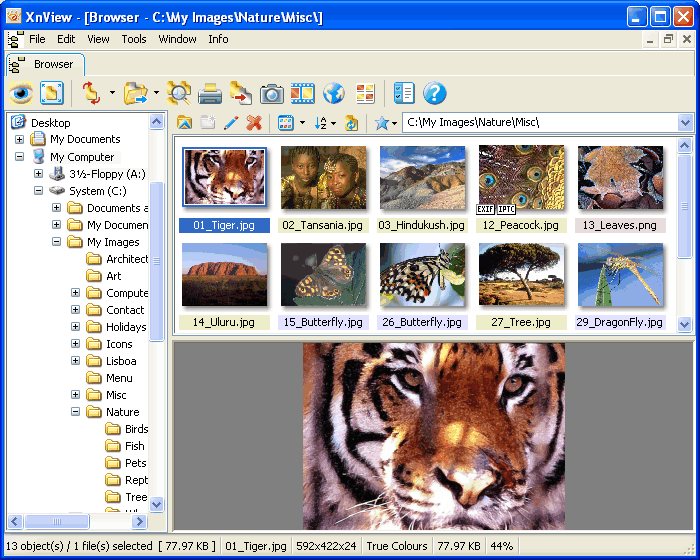 XnView - один из лучших просмотрщиков / конверторов графических файлов. XnView может производить такие операция над графикой, как обрезка, изменение размера, гаммы-контраста-яркости-баланса, печать, допускает применение к изображению разнообразных фильтров и проделывать над файлами многое другое, причем все эти операции и фильтры (в любом сочетании) можно применять сразу к большому количеству файлов, а преднастройки - сохранять в качестве сценариев и использовать позже.