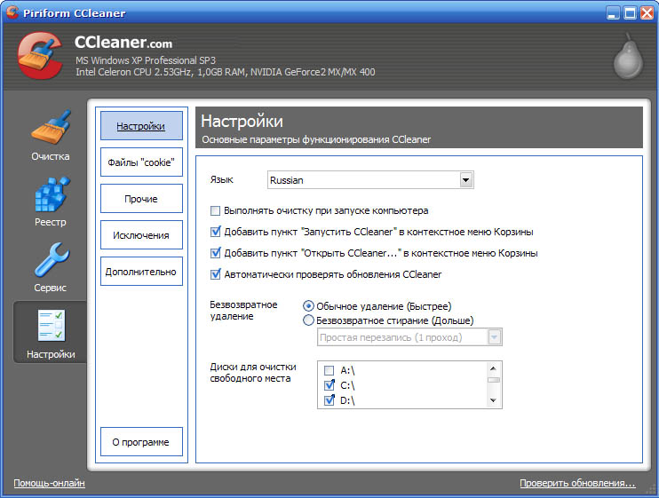 CCleaner - утилита для очистки системы от разнообразного "мусора": cookies, истории посещения сайтов, временных файлов (в том числе "производства" веб-браузеров и программ eMule, Google Toolbar, Office, Kazaa, Nero, Adobe Acrobat, WinRAR, Real Player и некоторых других), а также ActiveX-элементов. Кроме этого, CCleaner поддерживает очистку системного реестра от записей о неиспользуемых расширениях, библиотеках, уже удаленных программах и т.п. Поддерживаются 32- и 64-битные ОС.