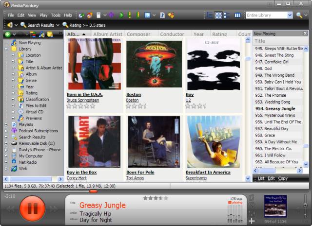 MediaMonkey - позволяет упорядочить музыкальную коллекцию, находящуюся на жестком диске, CD и в локальной сети. C помощью MediaMonkey можно быстро отредактировать теги (вручную или автоматически с помощью данных из базы freedb.org), найти неполные или повторяющиеся файлы, переконвертировать файлы в другие форматы, записать музыку с CD (в форматах OGG, MP3 или WMA) или на CD, а также загрузить в mp3-плеер. Поддерживается работа с CD и файлами OGG, WMA, MPC, FLAC, APE, WAV и MP3. В MediaMonkey встроен проигрыватель с удобным интерфейсом и поддержкой модулей Winamp.MediaMonkey в может интегрироваться с Nero для записи дисков.