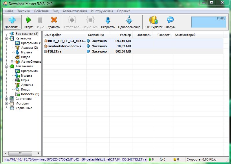 Download Master позволяет значительно повысить скорость закачки файлов через Интернет с использованием HTTP, HTTPS и FTP протоколов. Для этого используется разбиение файла на потоки, которые закачиваются одновременно. Программа также поддерживает докачку файла с текущей позиции после обрыва связи. Основными чертами, выделяющими Download Master среди других программ, являются высочайшая эффективность работы и удобный пользовательский интерфейс.