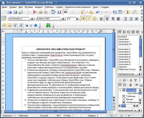 OpenOffice.org Pro - пакет офисных приложений. Включает в себя текстовый процессор, электронные таблицы, средства для создания и просмотра мультимедийных презентаций, редактор векторной графики и редактор математических формул. Сборка OpenOffice.org Pro от компании «Инфра-Ресурс» включает в себя несколько приложений, сопоставимых (с некоторыми оговорками) по возможностям с аналогичными приложениями из пакета Microsoft Office: Writer – текстовый процессор; Calc – электронные таблицы; Impress – создание и просмотр мультимедийных презентаций; Draw – редактор векторной графики; Math – редактор математических формул. Одно из крайне положительных качеств - возможность работы всех этих приложений с соответствующими документами форматов MS Office.